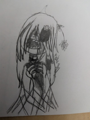 Just a few more drawings till.yes this is a doodle to me, I used no guidelines or sketch and used the sloppy sharp pen tool to draw, and I didnt rlly do much precise stuff plus I used airbrush for this whole thing. So ye have an adorable Edge in a nice lil dress!