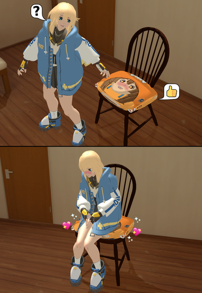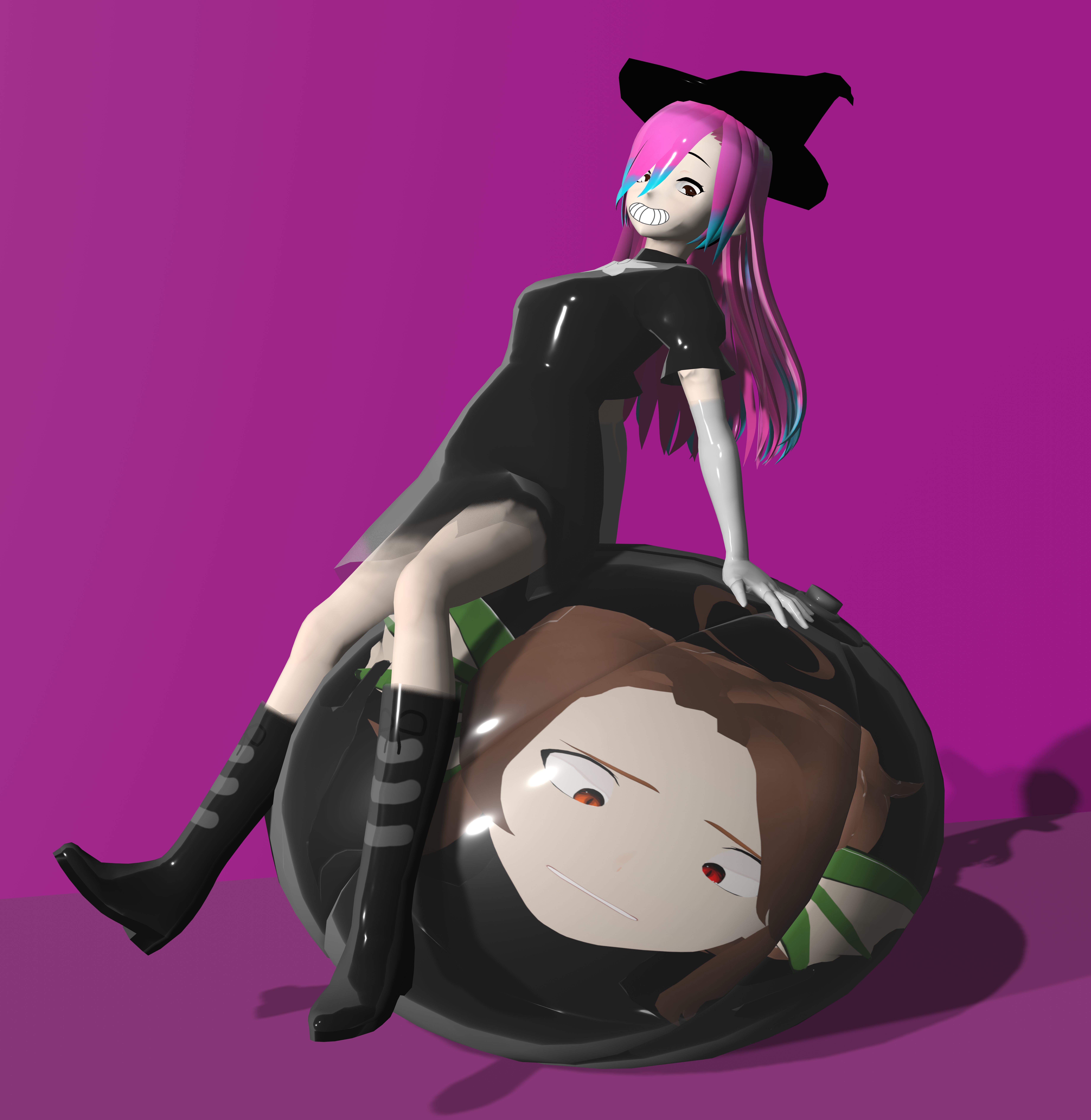 You know me by now, I love inanimate blank expressions on TF'd lasses. Really sells more of the humiliation factor of having little to no control over their predicament. So I pondered it for a bit, and I've done an identical animation to this image, as seen here: (www.deviantart.com/distortingr… ). So I thought to do a role-reversal where Samantha gets to have the fun. Let Sophia kiss HER ass in defeat. It's a fun little scenario. Now I'm not sure how much more balloon/inflatable shenanigans I'll be doing in the future. For literal smiley balloons, they may take more of a backseat for a bit. Maybe. I DO have some other inflatable things coming along such as a Pooltoy TF image and I'm still trying to find an idea that incorporates the Uberinflated Samantha and Sophia models I made last year. If you have any, please do let me know in DMs, Discord or Notes. I also have a very, very cringe Bopper Doll TF animation on the way that will definitely alienate audiences, so you have that to look forward to as well. So yeah, lots of inflation stuff, which is kinda annoying since I'm not known for that, but I suppose I've done everything except actual normal inflation. But the fact I have to call it "normal" in the first place is very concerning in relation to the content I DO post. I also have a lite-bimbo/expansion animation on the way which I consider one of my "core" animations. You know the ones. Where there's actually a proper setup, background, lore and everything? That one might be interesting, but may be a flop too. Perhaps I'll exaggerate the bimbo features more to make it worth watching more than once.