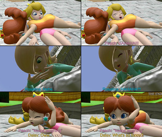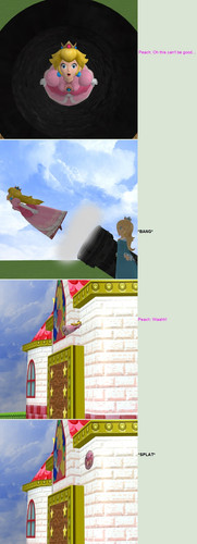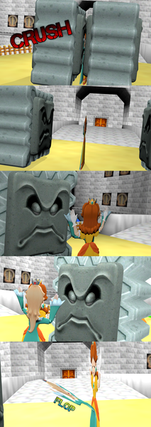 All three of the princess' bodies are reduced to nothing more than a sticker on the path as they are crushed lifelessly thin...Mario needs to teach them how to avoid thwomps!