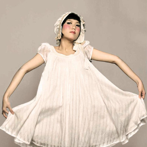 The dress and make-up, and then her expression! Fabulous! Awesome piece!
