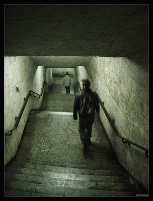 That's such a creepy picture. I love th lighting, and the composition and how the hallway leads the eye up to the shadowy figure-- GOSH!!