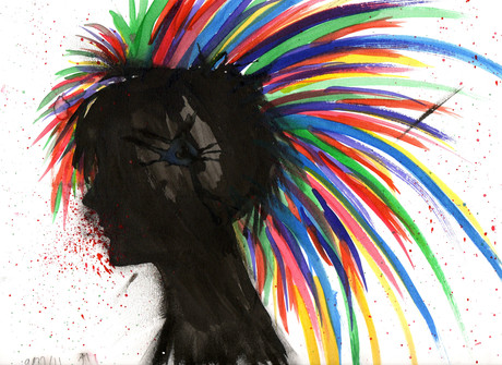 I used Prang watercolors, Staedtler watercolor pencils, shitty Fred Meyer outlining pens, and Micron pens.