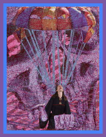 I decided to do the rendering and design of the show in a digital approach. I rendered the set on photoshop and used the color samples in ordering the paints needed. My scenic artist was Sara Pruter who worked off of printed copies of the rendering. I drafted the groundplan and elevations on AutoCad and my head carpenter Dale Kilpatric imported the AutoCad drawings into Vector works. The photograph below is the final set in performance. Costumes by Betsey Sahlman made from raw silk and dyed accordingly. Some of the lighting utilized digital robotic lights.