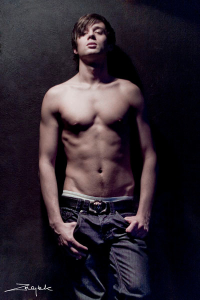 Quite sensual. His blond hair hangs down into his blond eyebrows; wisps of blond hair grace his triceps leading downward to his chest and barely discernable tufts of blond hair surround his round, sensitive nipples. Yet more downy blond tendrils barely cover his torso cascading into his navel only to turn dark and descend lower still. This is quite a photo. Without revealing much, you have captured the raw eroticism of this young man.