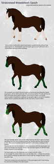 - You will often see the genos containing a dash ( - ). The dash is a placeholder for a different gene within that locus. They are there to let you know that it doesn't matter if the horse is heterozygous or homozygous for that gene. Example: A black tobiano's genes may be written as Ee/aa/nTb. This horse is heterozygous for black (Ee) and tobiano (nTb). But for the expression it doesn't matter if the horse is heterozygous or homozygous, so in these guides it would be written as E-/aa/Tb- ! (note: in this horse it DOES matter whether they carry agouti or not, since with it the horse would be a bay!)