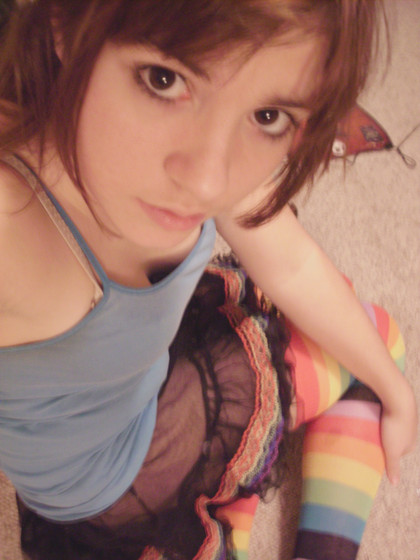 The eyes have it! Nothing better than a Hoodie/skirt(Short)/stocking combo!