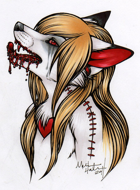 pretty hair and i adore the poofy elbow...but...eww, blood D8