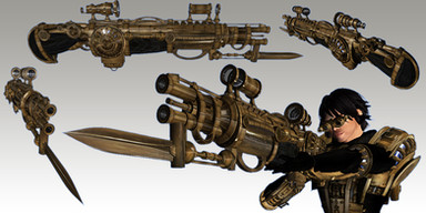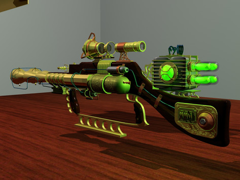 Well for the bullets you can see a loader under the scope in the lower picture. "technically", when you press the trigger the gears system put a bullet in the canon and then the bullet is ejected by the steam contained in the gaz cylinder under the rifle. The little golden cylinder on the side contains oil for the gears, and the 3 bulbs at the top indicate the power level of the shot. I don't think this could works for real but it have a cool look