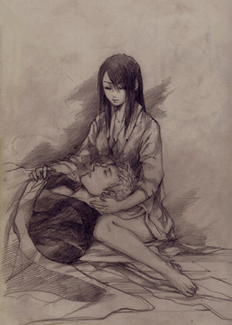 Ładne. Rukia ma bardzo fajny wyraz twarzy. Dobrze, ze zrobilas Renjiego w rozpuszczonych wlosach, taki jest o wiele przystojniejszy ^^