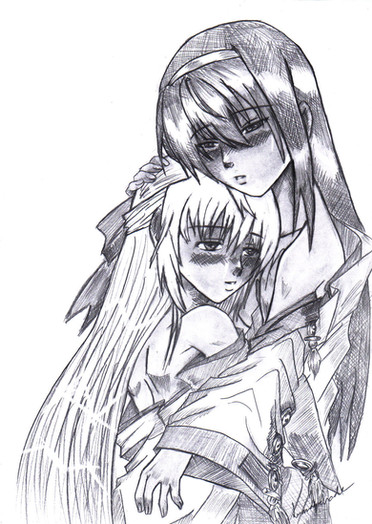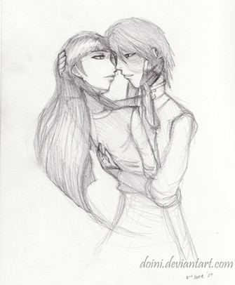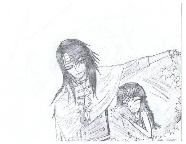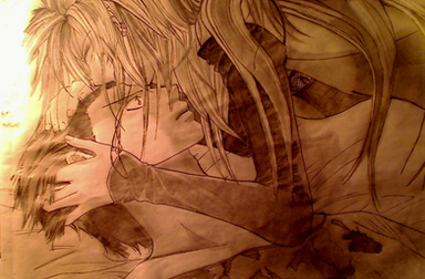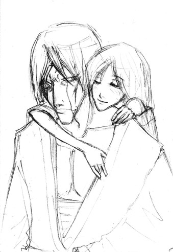 Łeee czemu nie lubisz Bleachaaaa! A narysowałas mój pierwszy pairing, który kochałam z całego serca. XD Oboje wyszli Ci super, ich twarze - <333.