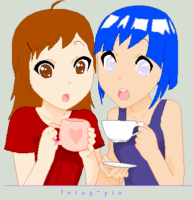 Free period in school. Decided to draw so I just searched pixel collab and picked this one randomly xDHave to finish this though cz time was running out. I jsut rushed through it... Mine's on the left btw.