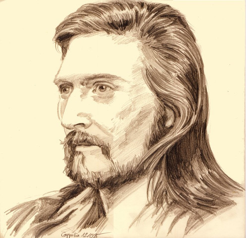 Before I knew that David Thewlis would be cast as Professor Remus J. Lupin I tried to come up with a Lupin, loosely based on the desription in the books. I would have loved Gary Oldman in the part, but I had no particular person in mind when drawing, just tried to obey the rules of human anatomy. 3 tries looked all fairly similar, this was the presentable one. Sep.2002Re: eyes, thanks to Madame Hooch's weird contacts I had for while the notion that some wizards got oblong pupils...
