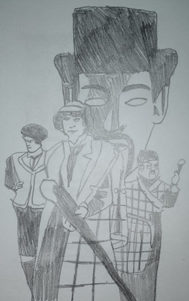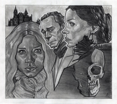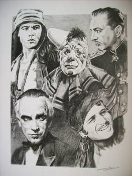 A cartoon I made for everyone involved in "Blithe Spirit" at the Savoy Theatre, London, 2004/2005.The Unseen are all the characters that are talked about in the play, but never appear. Except for Daphne (top -left).