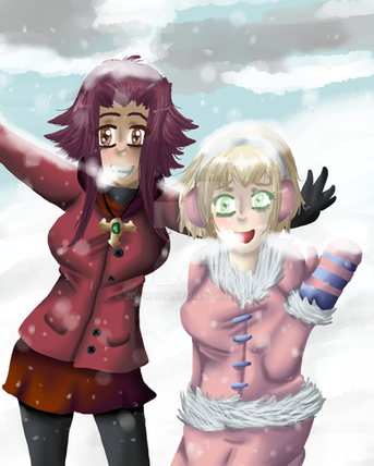 Your OC Carrie is super cute! When I saw the prompt of her in a fun winter scene with one of my characters, I got the idea of having her meet my own bunny-eared character, Six.