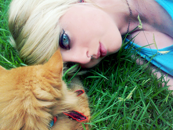omg i love your hair and piercings! and the kittys cool too haha ^_^