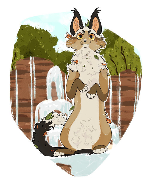Physical Description: Sharpkit is a tall and chubby kit with long accent fur around the face and ear tips, along with his tail, His fur is a light brown with tabby swirls accented with white. His eyes are almost like a honey amber.