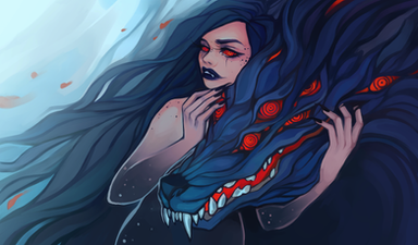 I have it in my head canon that that grisly wolf thing represents the lady's dark side.