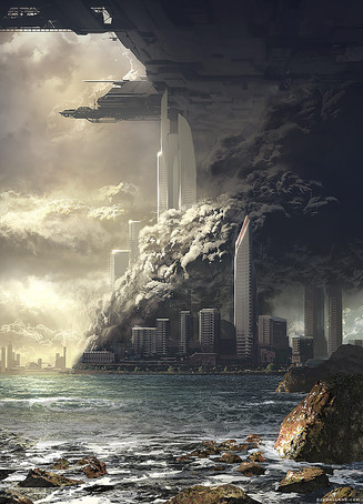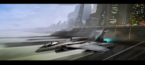 Nu-oice! I like how you postioned/layered the hovercraft both over the city, the horizon line and the sky with the similar vehicle not to far off to really sell the depth/height in this piece.