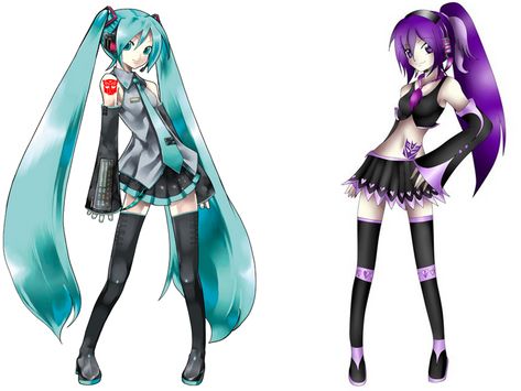 I've gone insane. Or maybe I've just listen to too much Vocaloid songs. Imagine a Vocaloid and Transformers crossover. Bet that'll make your brain explode.Why Miku ? Well, even if she sounds like a chipmunk, she can fight with her ponytails and she can cause World War III . You've just gotta respect a girl like that.