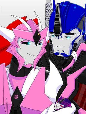 Well, it doesn't technically say she's with Prime, just that they have a "special bond." So maybe it gonna be all Star Wars-ish and Arcee's actually Prime's sister! *shot about 1,000 times*