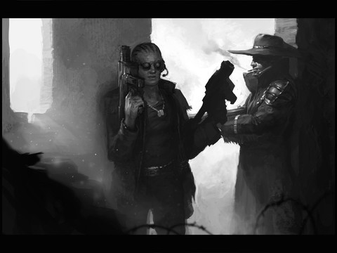 Thank You! This was one of the very first images I had done for Shadowrun, and I got a lot of freedom to play with the shooter's design. I tried to imply an up-and-coming 'Runner, with secondhand limbs and gear that have already seen a lot of wear and tear. After all, if you can afford the limbs but not the repairs, they'd get ragged pretty fast.