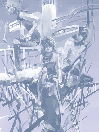 I love the motion and style of your lines. This is such a great picture, it really makes you want to know more about what's going on. Awesome!