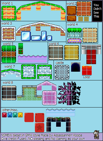Super Mario Maker 2 has but 2 trailers to its name right now, which is fine for a maker game, and also fine for someone like me who wants that smexy pixel art as soon as possible. Turns out Maker 2's pixel art isn't all that smexy after all (elaboration below. Hint: it's primarily SMW again)... All of these sprites' palettes are reused from the first Maker or from the original 3 games it's based off of, unless otherwise stated. (I use "rips" very loosely, since they may not be accurate since I just looked at the 2 aforementioned videos and formed conclusions on what the sprites look like)First of all, you may notice my sig isn't in this image. That's because, as much of a bitch as SMW's style was to rip, none of these sprites are technically mine and therefore, I give you permission to use these however the hell you want. Credit for the rips would be nice, but isn't required. Just do not claim these as your own rips after the time I had to spend ripping that damn Rotten Mushroom.