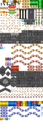 +The ON/OFF conveyor belts (wasn't a bitch because it was hard, but because it was tedious. I had to rip the little orb things at the sides of the belt, and then individually copy and paste them on to recolored versions of every individual frame of the conveyor belt animation. That's 16 sprites in total; you're welcome)