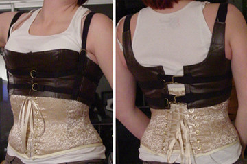 "rave top" design I made and had a girl make, she's out of business now thostretchy cotton and stretchy vinyl, velcro collar with D ring to add cute things to.