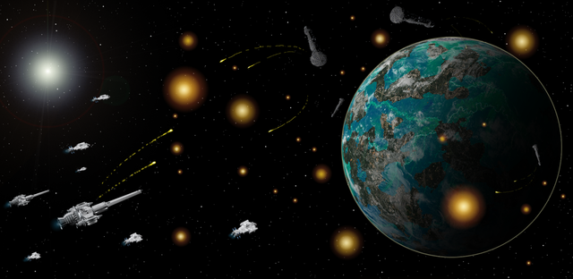 We were caught off guard when they mustered the guts to come knocking on our door step. their main fleet ripped through the F.R.D.F, leaving the Orbital Colonies defenseless.