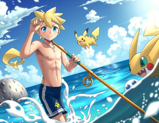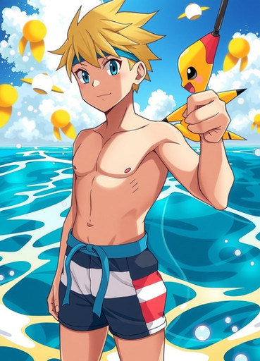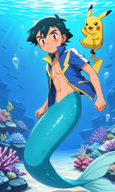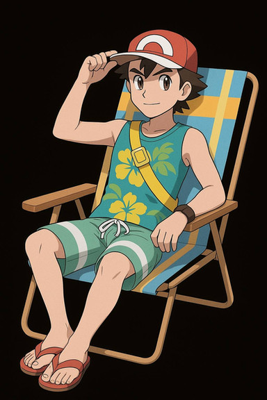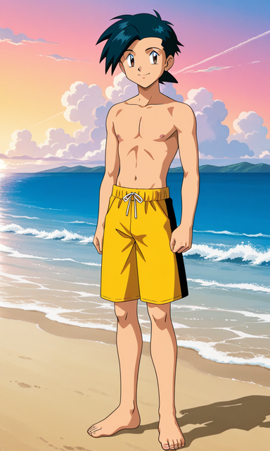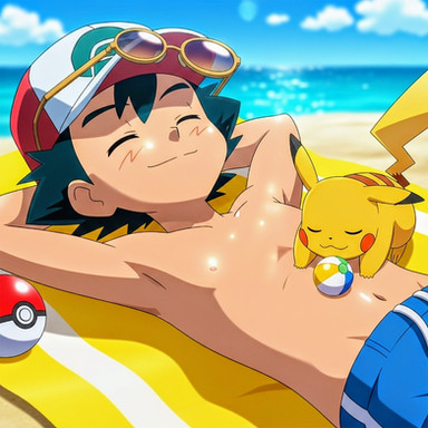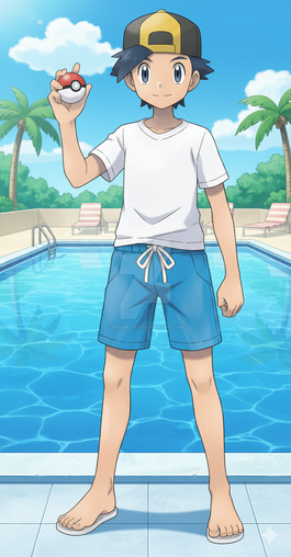 #pokemon #pokemontrainer #anime #beach #ashketchum #digitalart #fanart #render #animeboy #malecharacter #aigenerated #pixai