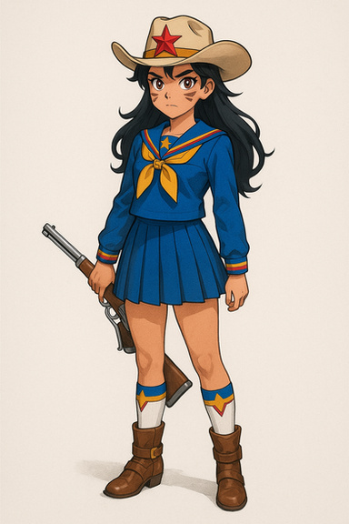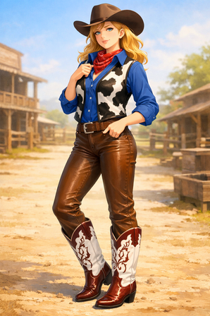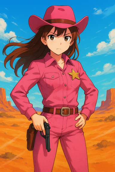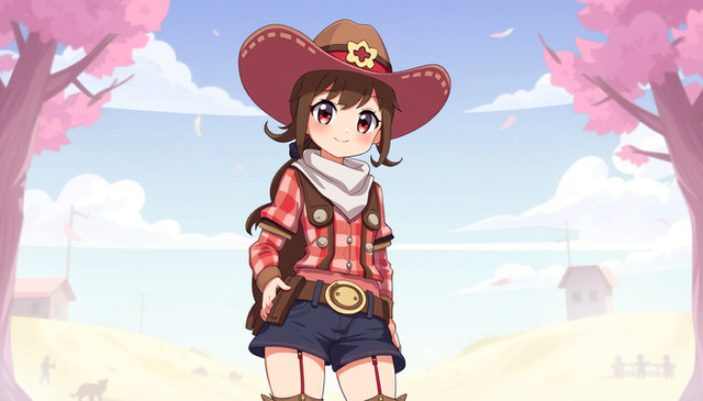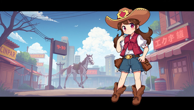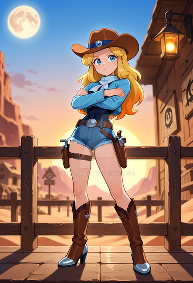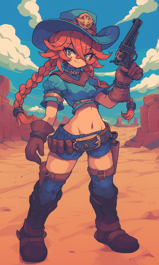 #western #digitalart #anime #animegirl #fanart #characterdesign #cartoon #redhair #batch #cowgirl #moncolleknights #aigenerated #pixai