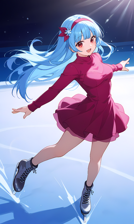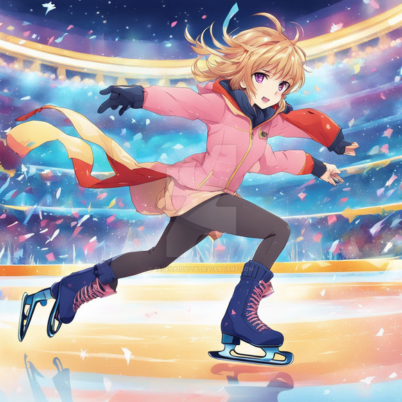 #anime #animegirl #digitalart #fanart #animedrawing #redhair #batch #iceskater #iceskating #moncolleknights #aigenerated #pixai