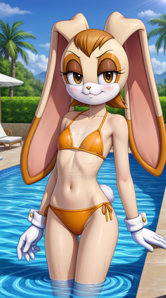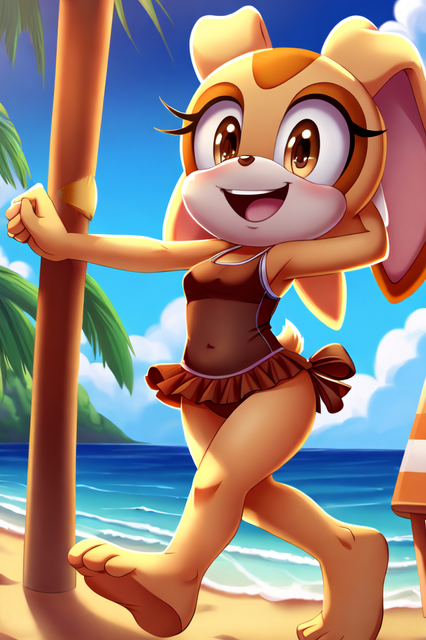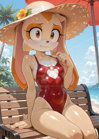 #fanart #beach #sonicthehedgehog #digitalart #bunny #rabbit #videogamefanart #sonicfancharacter #creamtherabbit #leotard #swimsuit #aigenerated #pixai