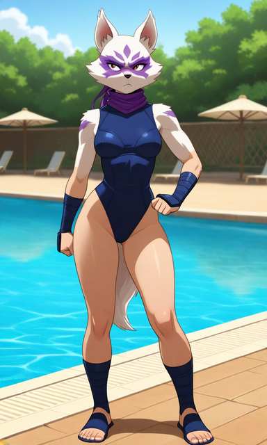 #cartoon #fox #digitalart #fanart #brutalpawsoffury #foxyroxy #swimsuit #videogamecharacter #videogamefanart #aigenerated #pixai