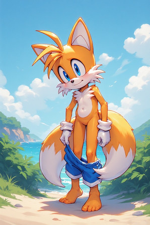 #fox #beach #sonicthehedgehog #digitalart #fanart #briefs #tailsmilesprower #videogamecharacter #videogamefanart #aigenerated #pixai