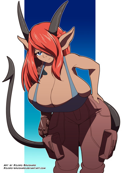 #characterdesign #horns #hugeboobs #hugebreasts #pinup #referencesheet #refsheet