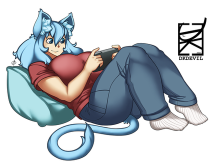 She stayed up all night to get one of those limited time unlocks in her game. I hope she gets it before time runs out!January patreon piece for Zerowag of my Azure~