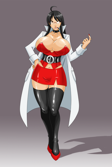 #blackhair #cleavage #giantboobs #hugeboobs #labcoat #lessien #tighttop