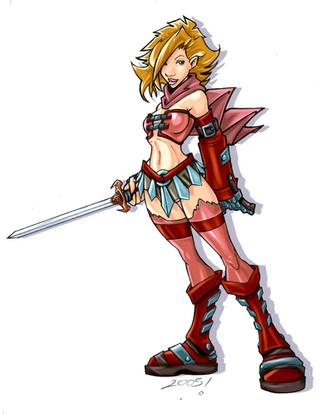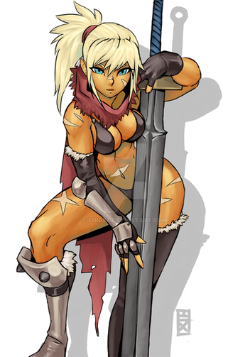 #abs #boobs #cleavage #armor #blonde #cloak #dagger #elf #dkdevil