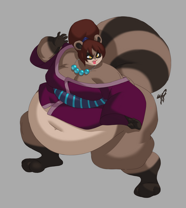 Ha! I guess female tanukis have an upper-torso equivalent of the situation male tanukis experience "downstairs". She wears it well!