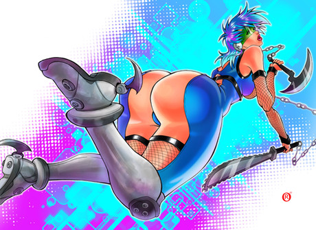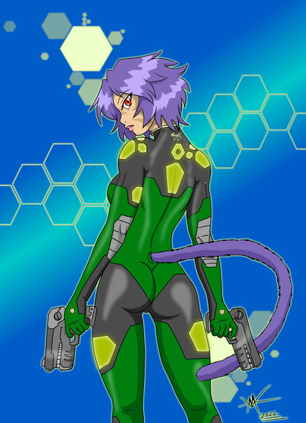 #bluehair #butt #catgirl #guns #scifi #tightclothing #dkdevil