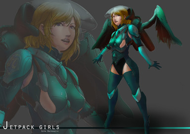 #jet #pinup #armor #characterdesign #digitalart #rocketsuit