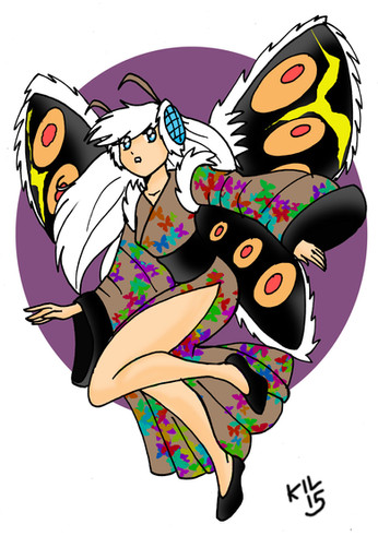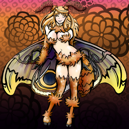 Muye is specifically equipped for this kind of costume! She'll spook the kids on the streets with her Mothra costume! Done for DemonG for last year's October Patreon batch~----------------------------------------