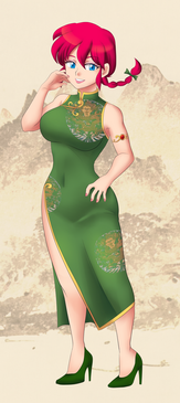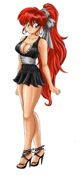 I'm glad you like it! It's based on a headswap I did ages ago, taking a pic of Nabiki in this dress and putting Ranma's head on her. Ranma's reaction to being in this outfit is significantly more intense than Nabiki's.
