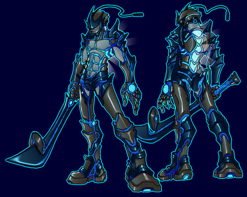 I like the stark contrasts between the dark plating and the glowing blue lights