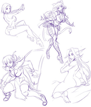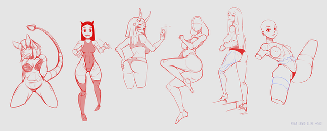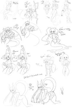 Another sketchbook page! Here we've got a piece a friend of mine did in the top left, hopefully he doesn't hate me for sharing it :V then there's leg studies, butt studies, a few sketches, and in the bottom right there's a rough sketch for a fanart of the dragons from miss kobayashi's maid dragon that I never got around to finishing~Tumblr: dkdevil.tumblr.com/