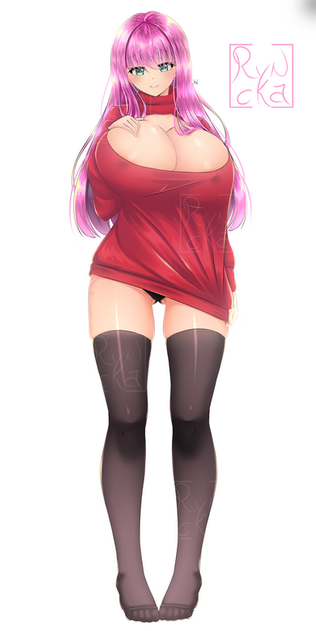 That sweater... that bosom... that face... that long pink hair... those boots... THOSE THIGHS!