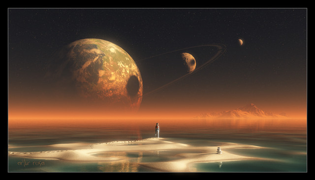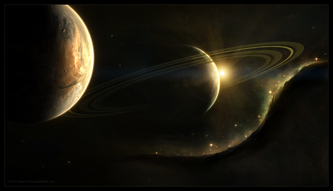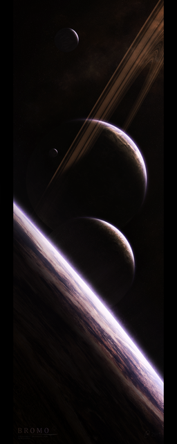 This is your best to date. I love the 'grainy' effect on the large planet and it's rings.