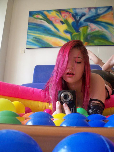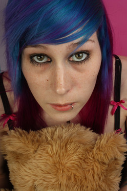 Love the pink hair, the pink eye shadow and the tats.. but what I love most of all is the sexy feet peeking behind your GORGEOUS face. Nice self shot